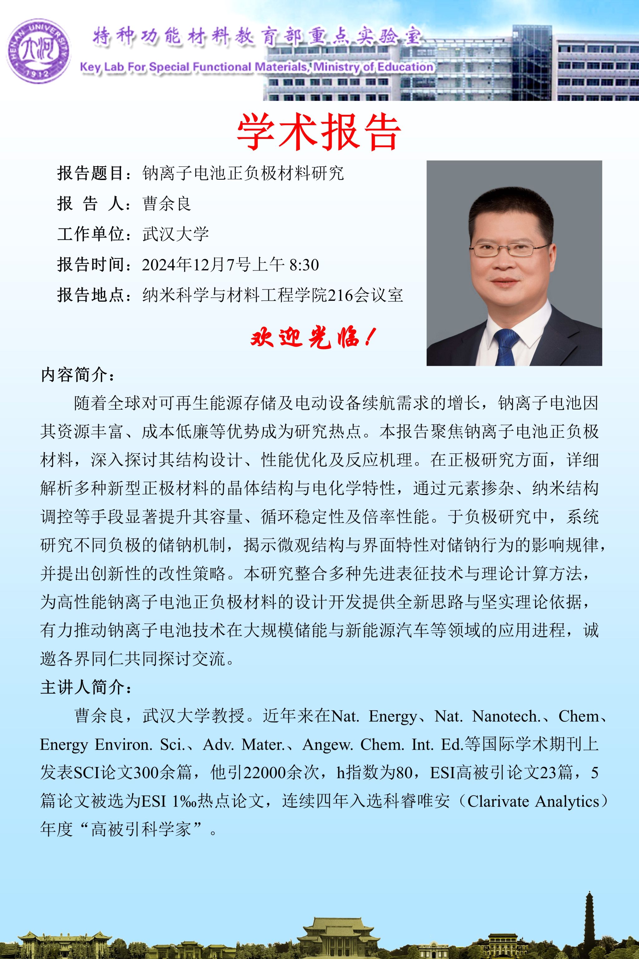 曹余良:钠离子电池正负极材料研究(时间:12.7)